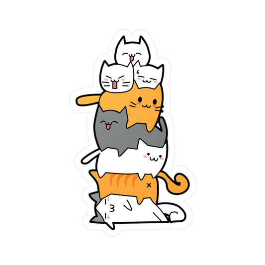 Cute Cat Tower Stack Vinyl Sticker, Durable Satin Finish Kitten Decal, Water-Scratch-UV Resistant, Peel & Stick, Whimsical Cat Lover Gift